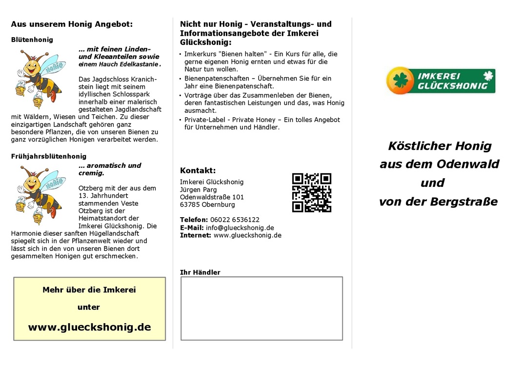 Die wichtigsten Informationen finden Sie kompakt und übersichtlich im Flyer der Imkerei Glückshonig: